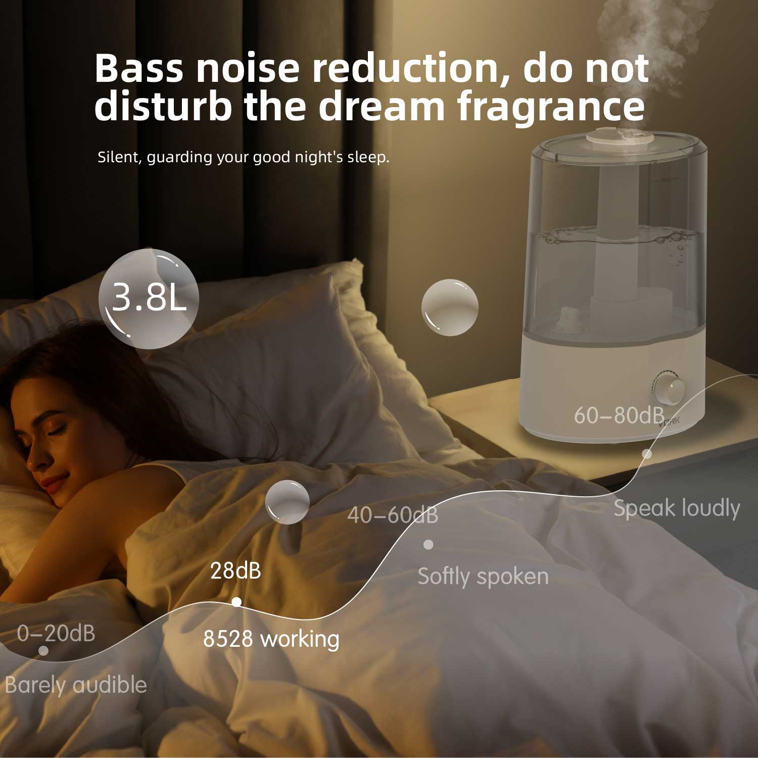 Nuestro humidificador está diseñado para brindar 360 grados de prevención de la humedad, lo que evita que haya manchas húmedas en el piso. Significa que puede usarlo con niños y mascotas sin preocupaciones.