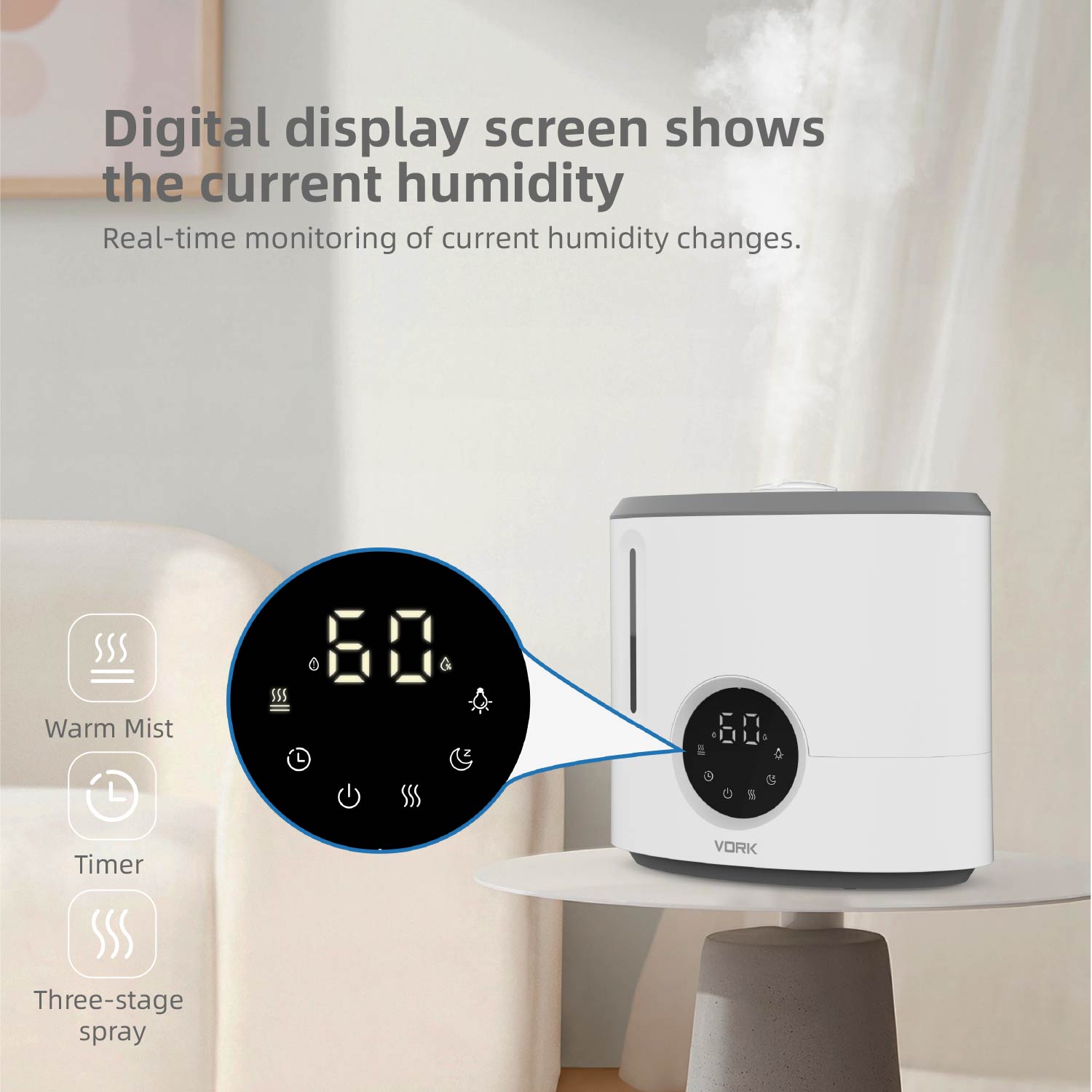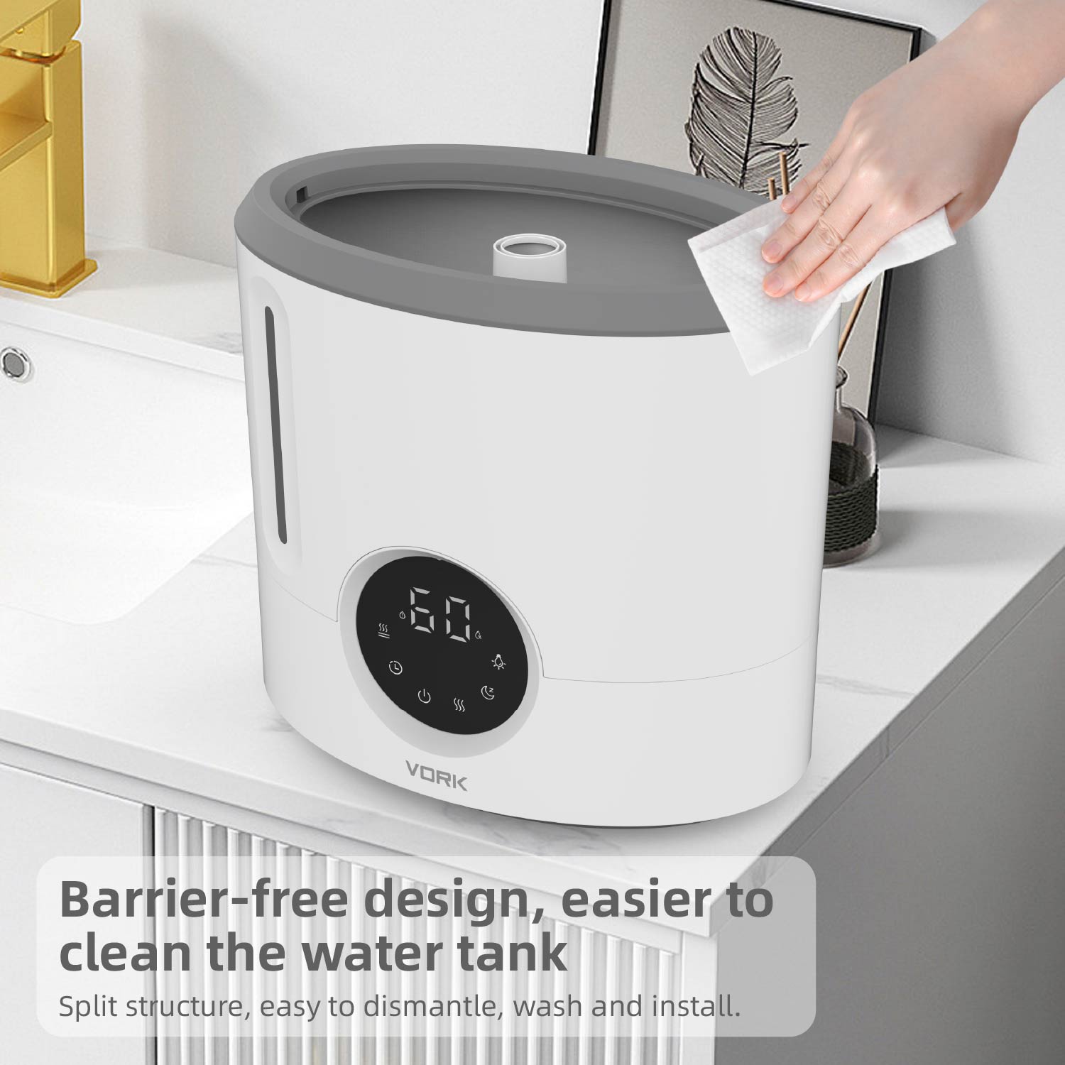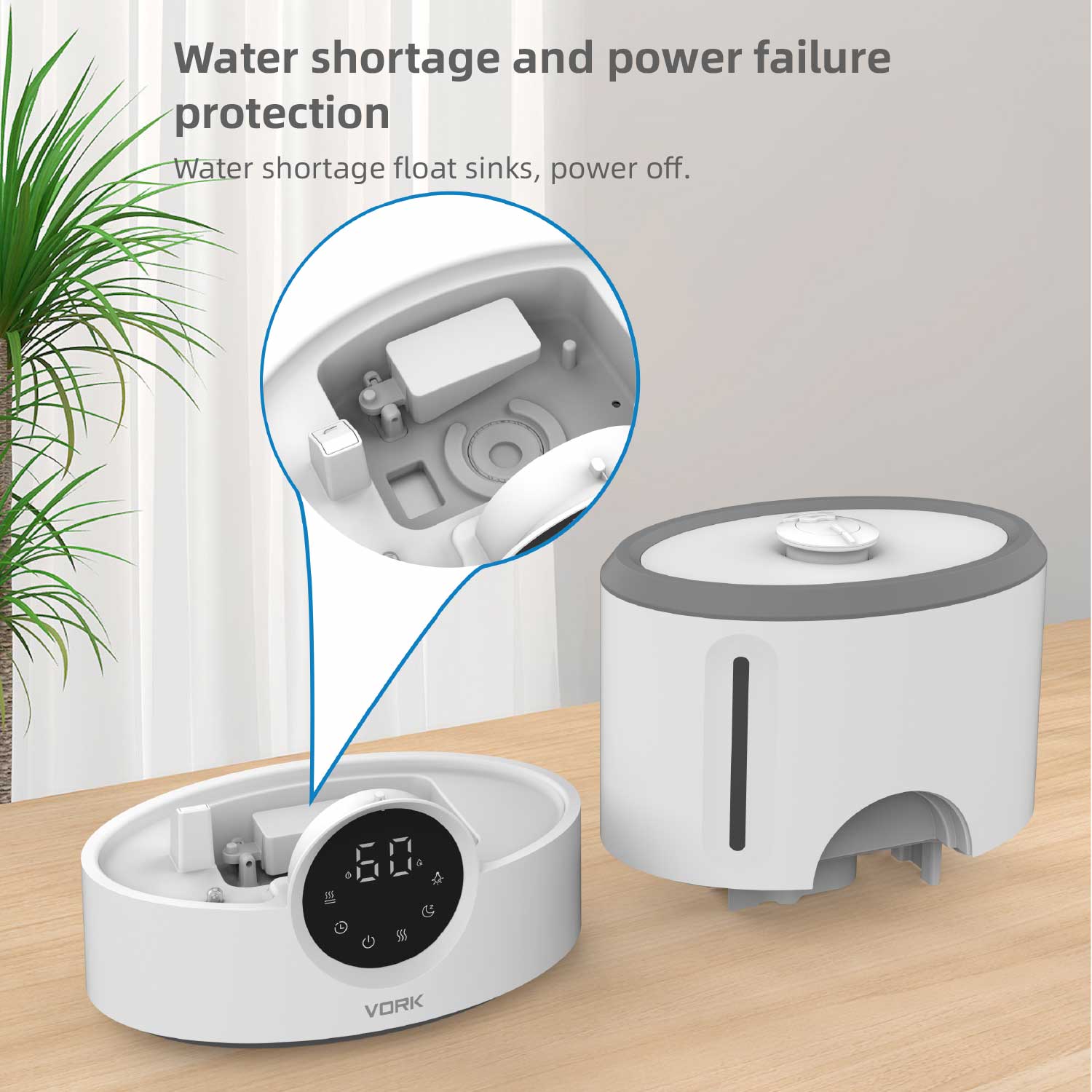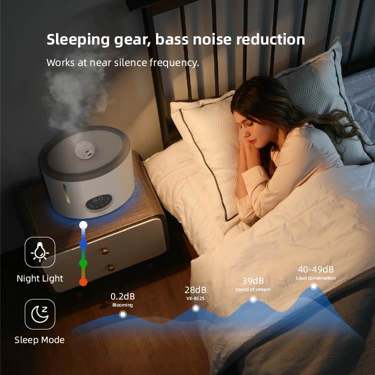 Nuestro humidificador está diseñado para brindar 360 grados de prevención de la humedad, lo que evita que haya manchas húmedas en el piso. Significa que puede usarlo con niños y mascotas sin preocupaciones.