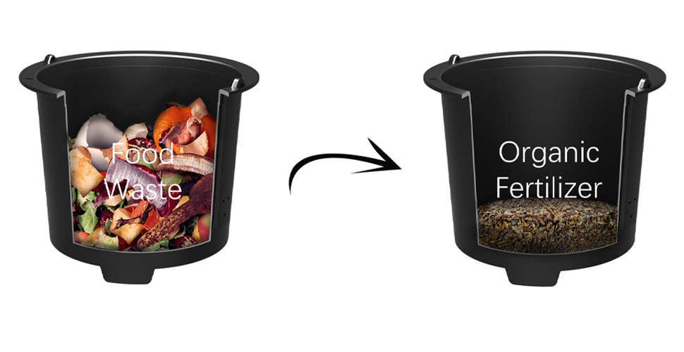 Simplemente coloque los desechos de alimentos en la olla, luego presione el botón para encender la máquina. El dispositivo secará y descompondrá los desechos de alimentos en una décima parte de su volumen original y creará un fertilizante rico en nutrientes que puede mezclar con su suelo. Y tiene sistema de filtración de carbón que elimina los olores, por lo que es perfecto para uso en interiores.