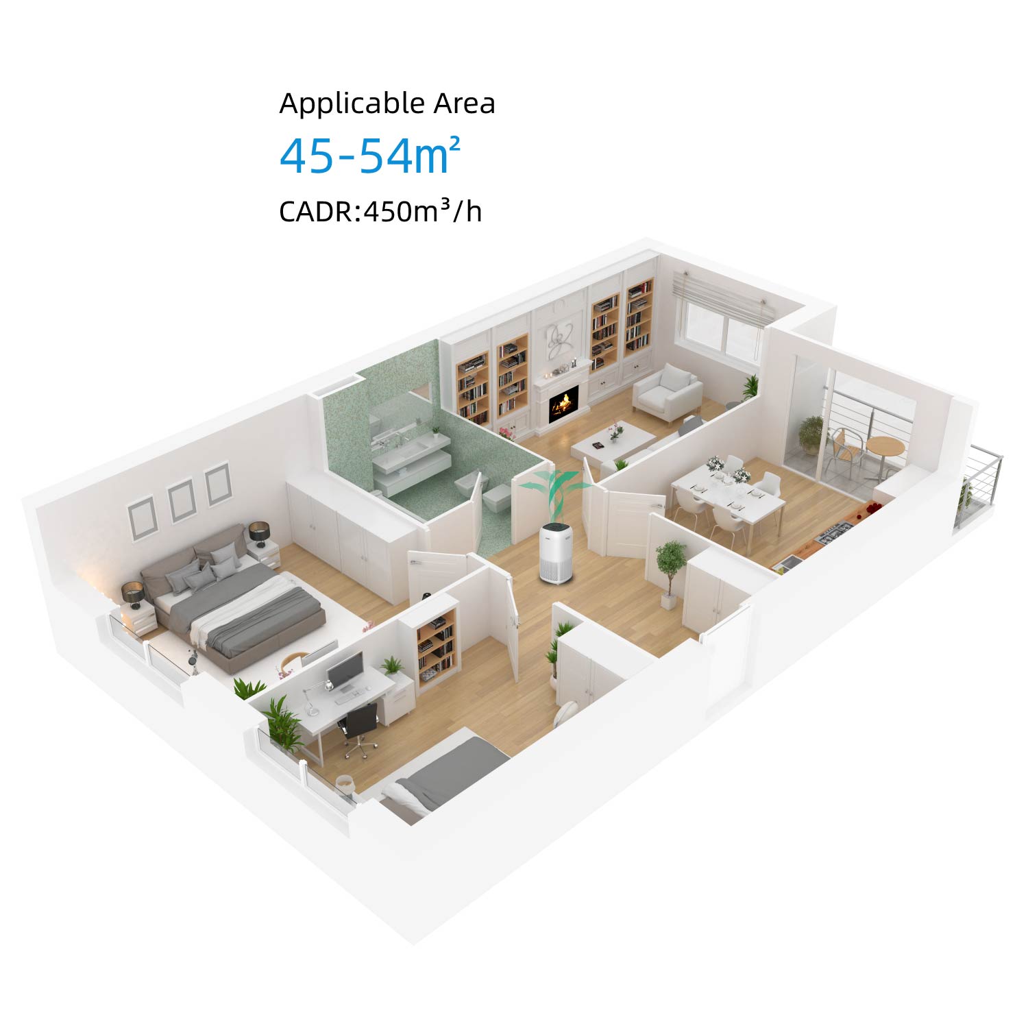Este purificador de aire en particular es muy adecuado para habitaciones medianas y grandes, habitaciones para bebés, habitaciones para toda la familia.