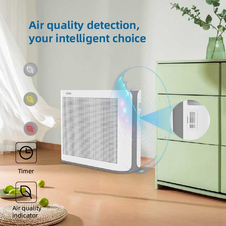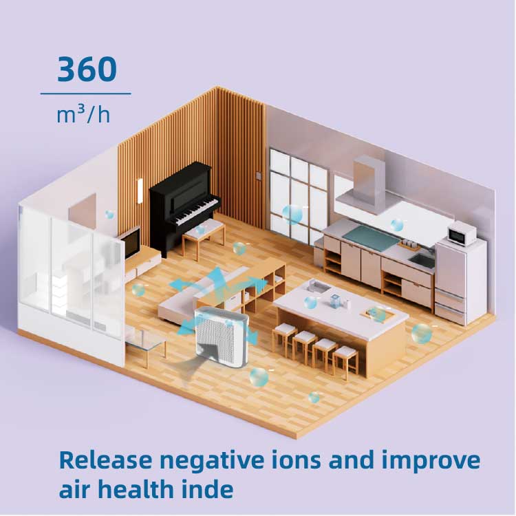 Filtración de 2,3 grados: el filtro HEPA adopta un prefiltro ultrafino y carbón activado, que puede capturar el 99,97% de las partículas pequeñas de 0,3 micras y una gran cantidad de contaminantes, como polen, polvo, caspa de mascotas y humo;