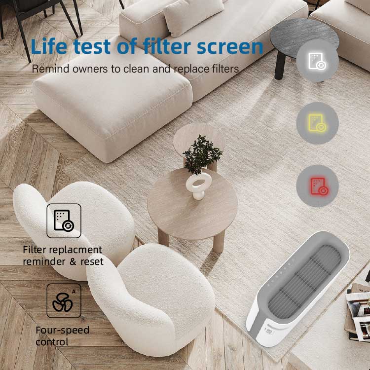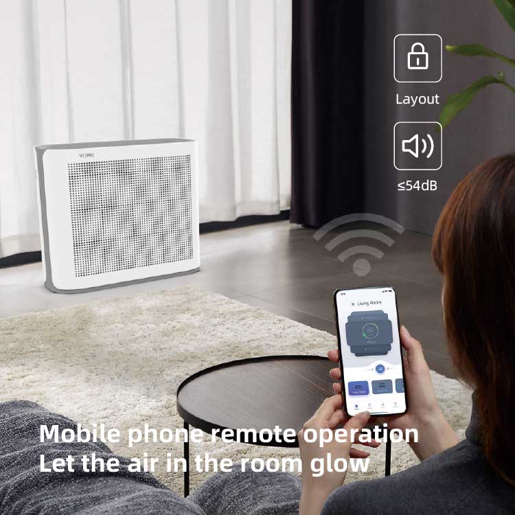 Purificador de aire de control WiFi inteligente para el hogar; modo de silencio; Temporizador inteligente; sensor de calidad del aire; Cuatro ventiladores de aire son ajustables