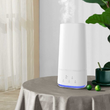 1. Partículas finas de niebla de agua: Este tipo de humidificador puede dispersar el agua en diminutas partículas de agua nebulizada, que son más finas que las de los humidificadores tradicionales y son más fáciles de inhalar en la habitación sin causar deposición ni fugas de agua nebulizada.